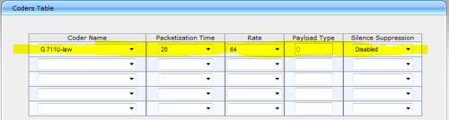 - Select the voice coder in 'Coders Table' page (Configuration tab > VoIP menu > Coders and Profiles submenu > Coders page item). Set these parameters:
