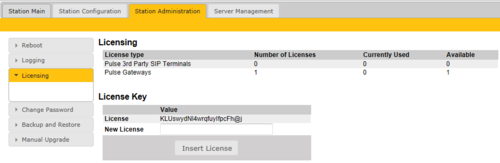- To install the license, log on to the Pulse Server, and under Station Administration > Licensing insert the License Key: