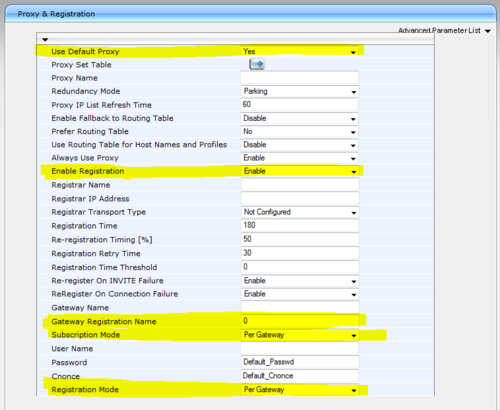 - Gateway Registration name: 0 (This parameter must be identical to the directory number for the gateway defined in the Pulse Server)