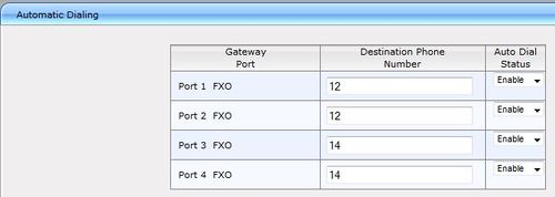 3. In the Endpoint Phone Number Table page, you define how many outside lines to use, and link the lines (= Channels) to the prefix code (e.g. "0") and to the Hunt Group ID 1. (Configuration tab > VoIP menu > GW and IP to IP submenu > Hunt Group submenu > EndPoint Phone Number page item).