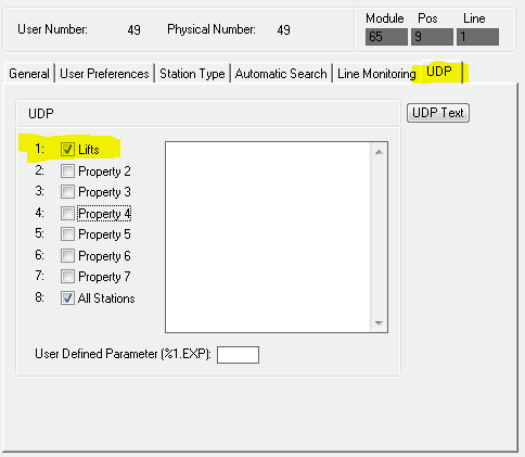 - UDP group 1: Elevator stations must be included in UDP group 1