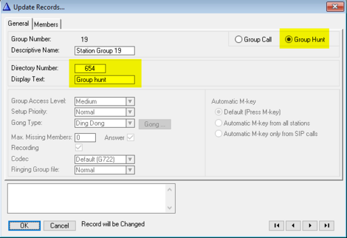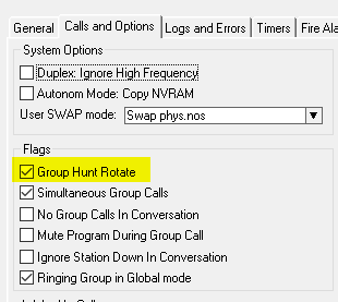 When a Group Hunt Number is dialed, the exchange sequentially scans the stations in the group, and the call is connected to the first station that is free. Depending on the setting in AlphaPro (Exchange & System -> System -> Calls and Options), the Group Hunt can be programmed either to:
