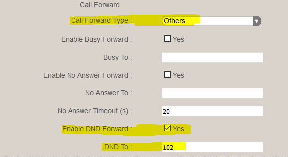 In the same configuration page you can activate Call Forwarding: