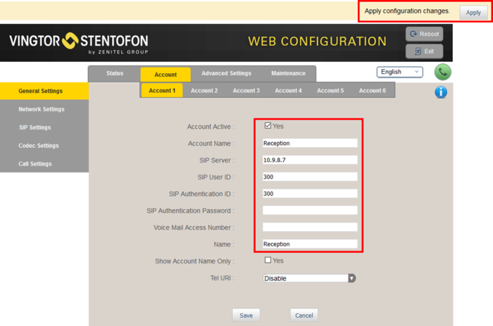 - Select Account > Account 1 > General Settings