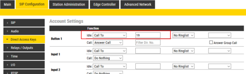Log on to the web interface of the substation, and navigate to SIP Configuration > Direct Access Key Settings.
