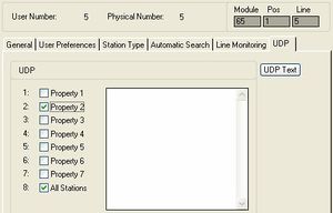 UDP is short for User Defined Property. An UDP group is a group of stations that are used by the Event Handler to construct rules that applies to a group of stations. There are 8 UDP groups available. By default all stations are included into UDP group 8.
