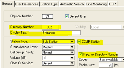 - In AlphaPro, Users & Stations, select physical port 39. Then press the button DAK, and configure as follows: