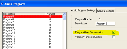- The "Audio Program" audio should stay on even if the intercom stations are in conversation: