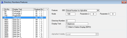 The directory number (prefix) used to access the telephone line must be programmed in the AlphaCom directory table with feature 83 and Node = SIP Trunk node number (100 in this example).