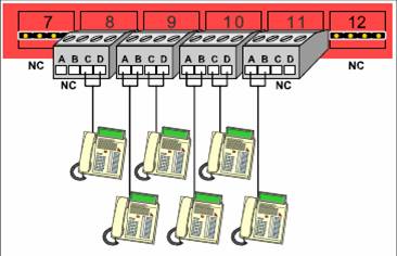 The standard connection board provides connection for 6 analogue telephones and 6 RCO outputs.