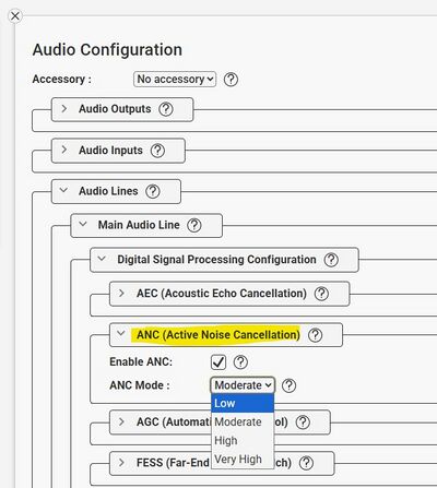 ANC setting in the Zenitel Connect Pro