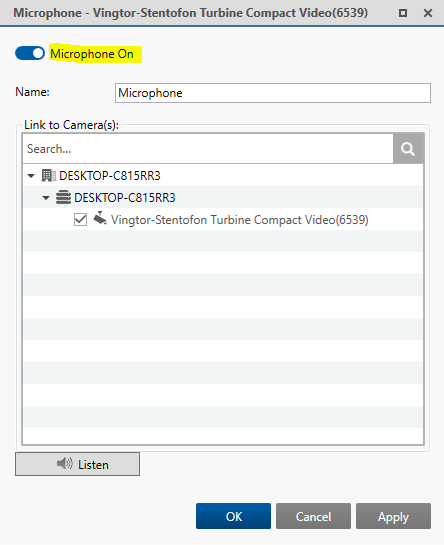 - Ensure that the Microphone option is set to On (it's set to Off by default), click "Apply" and close the setup.