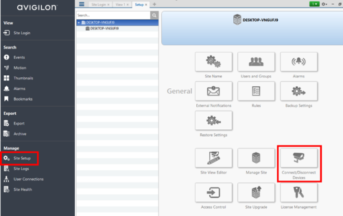 - From the side menu, choose Site Setup option and then click on Connect/Disconnect Devices:
