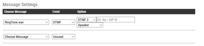 Audio message can be played on received DTMF tones during a call. Valid digits are DTMF 0 - 9, *, #. The event can be filtered by directory number (SIP ID).