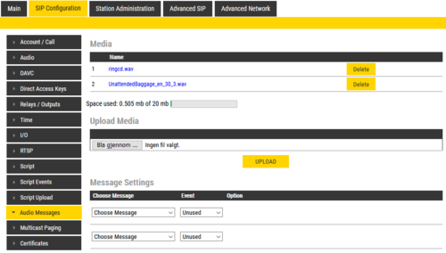 Prerecorded audio files can be uploaded to a Zenitel Device, and the audio messages can be triggered by various events occurring on the station. The audio message files are uploaded from the station webinterface or from the VS-IMT tool.