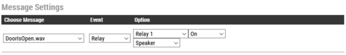 An audio message can be played when a Relay or an Output changes state. Available states are On, Off, Slow Blink, Fast Blink.