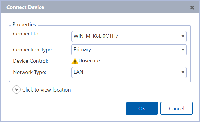 - If your device is not in the discovered devices list you can search for it by clicking Find Device....