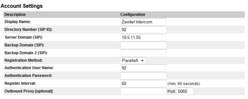 - SIP Display Name: Zenitel Intercom