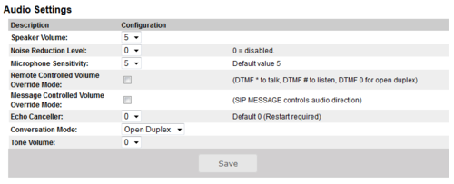 - SIP Configuration -> Audio Settings