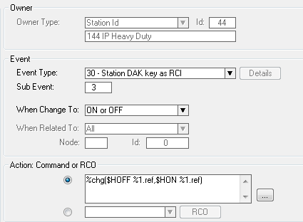 The action string is: %chg($HOFF %1.ref,$HON %1.ref)