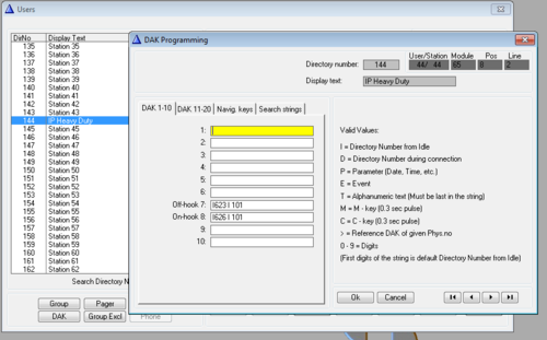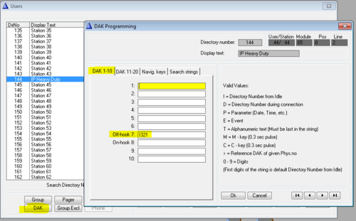 Configuring button D1, D2 and D3 in AlphaPro, Users & Stations > DAK window