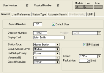 - From the Users & Stations window in AlphaPro, select a user and enable the 'SIP station' flag