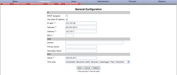 On the General Configuration page you define IP and NTP settings for the STENTOFON IP-DECT Server 6000.