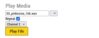 - Play Media: Enter a filename, press Play File to play the file. For valid filenames, see below.