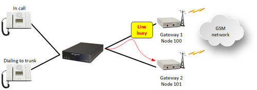 Sometimes it may be desired for the user to have more lines, this can easily be achieved by adding one more gateway. However normally there is one prefix for each gateway, and this can be problematic for the user, getting busy signal on the first prefix, and then needing to redial with the second prefix. This solution shows how to have two gateways, but only one prefix. The solution can be used to expand number of analogue lines from 4 (1xMP114) up to 8 (using 2xMP114) or expanding from 1 GSM line to 2.