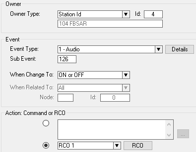 Press the button "Details" to select which type of audio that should trigger the RCO (Sub Event 126 means all types of audio).