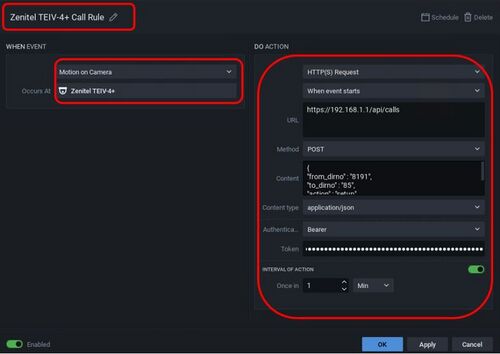 Create a new event against the Zenitel device by right clicking and selecting Rules
