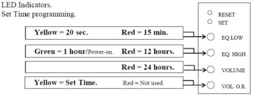 - When the yellow “Set Time” LED turns on in response, release the SET key. The Set time programming has now been entered.