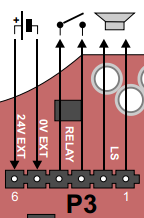 P3 - External Loudspeaker, Relay Output and External Power Input