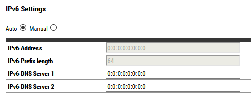 Select Main > Main Settings to access the page for configuring Mode of operation and Network Settings, then scroll down to section IPv6 Settings. By default, Turbine will be configured to receive IPv6 address dynamically (Auto), but in case of need, we might set static IPv6 address as well (Manual).