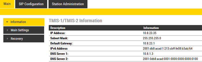 A station in SIP mode will show assigned IPv6 address on Main Information page. If private or global unicast IPv6 address is not assigned to Turbine interface, IPv6 address shown in this page will be station's link-local address.