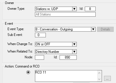 - Remote Control Output RCO 11 will be triggered when any station (= UDP 8) is calling group call 890.