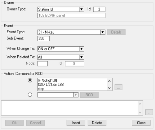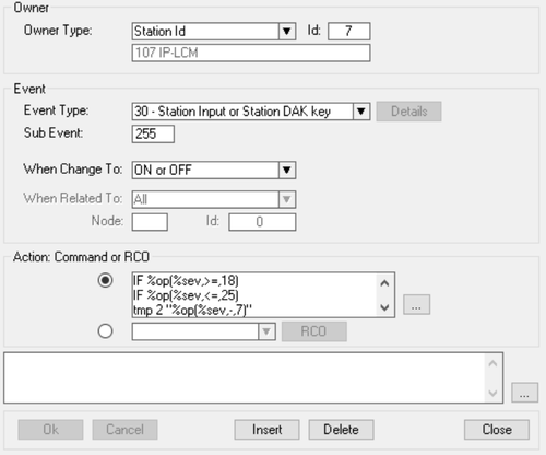 In the ICX-AlphaCom we need to configure one relay of the IP-LCM to operate when one group call is made, and another relay to operate when a different group call is made. This is done in the Event Handler.