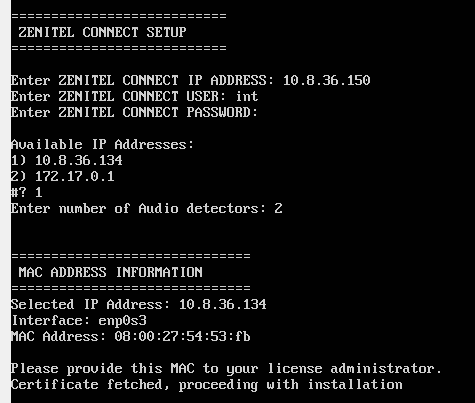 - Note: Choose IP address based on number in front of relevant IP address. In example above press number 1 if you want to use 10.8.36.134 as IP address of audio analytics server. ’’
