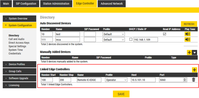 Linked Edge Controllers makes it possible to call between different IC-EDGE Systems. The routing between IC-EDGE Systems are easily configured in the Edge Controller Directory.