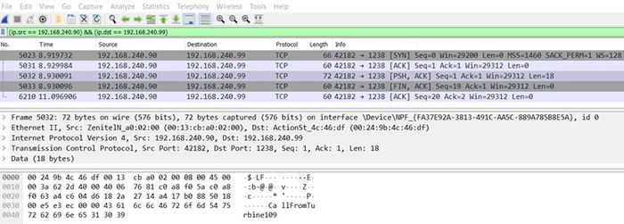 When pushing the call button on the Turbine the TCP telegram can be logged using WireShark: