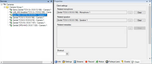 • Select Client tab within the camera device