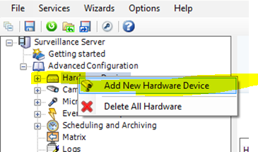 - Expand the Advanced Configuration folder, and right click Hardware Devices, and select Add New Hardware Device.