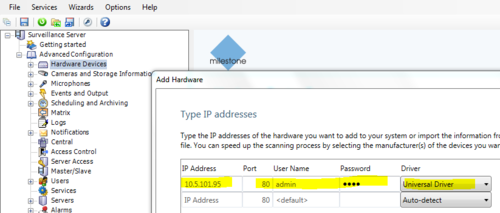 - A wizard offers you several ways of detecting and adding cameras. Follow the instructions and consult the Milestone documentation if required.