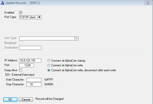 - Enable Connect at AlphaCom write, disconnect after each write