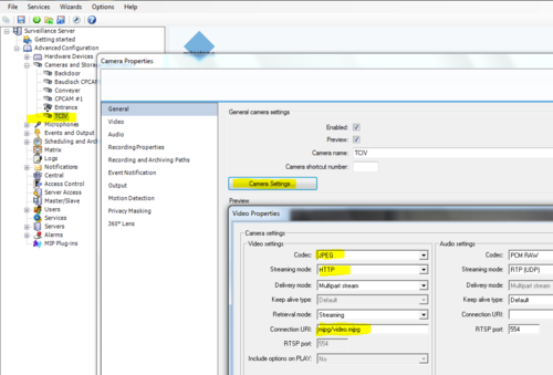 After the camera has been added, you need to change the video properties: