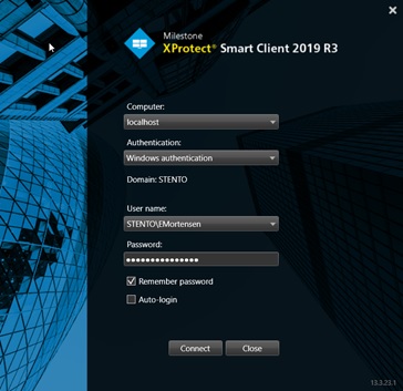 Press “Connect” and wait until the Milestone XProtect Client is started.