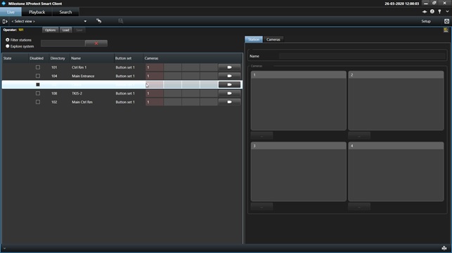 All nodes and all stations can be auto-discovered. This information, together with settings related to operation and camera association is stored in an XML-file. By selecting an already existing file (in case the configuration has been done for a different operator already) it is not necessary to do the same task multiple times.