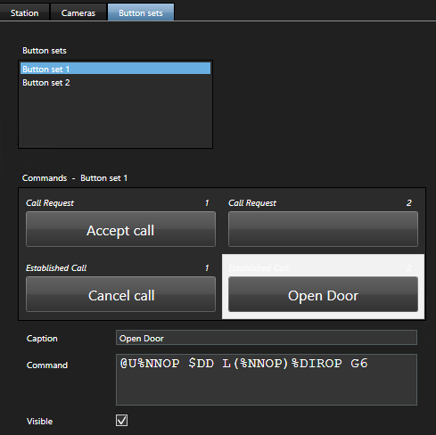 To be able to do door opening during conversation, a Open Door button must be added to the button set. We will use the Established Call button 2.