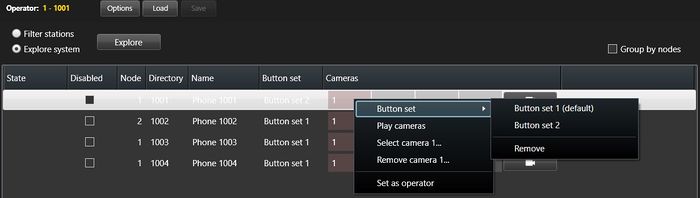 Button set 1 is assigned by default to all discovered stations. To change, select a station in the list and right click. Select menu item Button set > and then select the required button set or remove the button set.