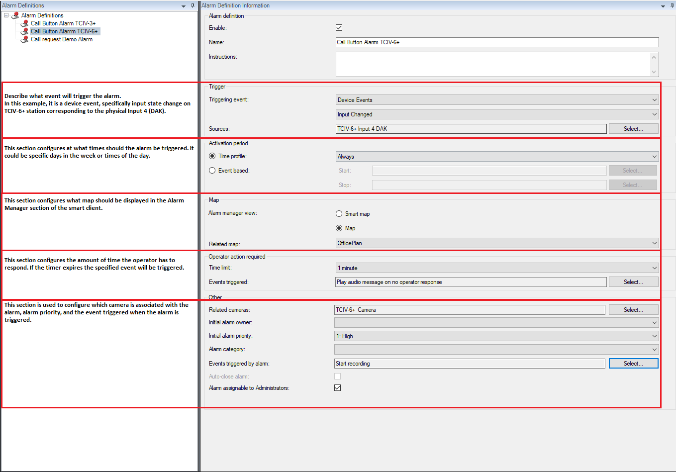 Alarm configuration